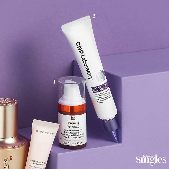 리치한 텍스처로 눈가 보습과 영양을 든든하게 채워주었던 아이 크림. 하지만 눈가에 남아 있는 잔여감 때문에 주로 저녁에 사용하거나 매일 바르는 것이 부담스럽다는 단점이 있다. 그래서일까, 점점 라이트한 발림성의 아이 세럼을 찾는 이들이 많아지고 있다. 가볍게 발리고 빠르게 흡수되어 아침과 저녁 모두 사용 가능한 데일리 아이 케어 제품으로 적당하기 때문이다. 단 한 가지 아쉬운 점은 아이 크림에 비해 기능이 한정적이라는 것. 주로 보습에 집중되어 있어 주름, 아이백처럼 심화된 눈가 고민을 지닌 이들이 단독으로 사용하기에 부족하다는 것이다. 이러한 소비자들의 인식을 의식해서인지 제품 선택의 폭이 적었던 이전과 달리 최근에는 아이 세럼 기능이 세분화되고 있는 추세다. 가벼운 포뮬러에 브랜드만의 독자 성분을 담아 고효능을 뽐내는 것. CNP의 레티날 DXTM 트리트먼트는 레티놀 성분을 모공의 10분의 1 사이즈로 줄여 깊은 주름까지 케어가 가능하도록 고안했고, 키엘의 파워풀 비타민 C 아이 세럼 은 주름 개선 효과의 아데노신과 고농축 순수 비타민 C 성분을 안과 테스트를 완료한 부드러운 세럼 포뮬러에 담아냈다. 아이디피부과 황종익 원장은 “세럼은 다소 무거운 크림 제형보다 피부 흡수력이 더 뛰어납니다. 미백, 주름 개선, 보습, 피부 재생 성분이 그만큼 피부에 잘 흡수되고 효과를 빠르게 볼 수 있 습니다”라며 라이트한 제형의 아이 세럼의 특징을 설명한다. 즉 눈가에 무거운 유분감을 남기지 않으면서도 원하는 영양을 공급할 수 있는 다양한 아이 세 럼 제품을 선택할 수 있게 된 것이다. 2 in 1 효과를 겸비한 신박한 제품의 등장도 아이 케어 제품의 세분화를 가속화한다. 지방시 뷰티 커뮤니케이션팀 김혜진 대리는 “밀리지 않는 실키한 포뮬러에 진주 펄을 더한 렝뗑뽀렐 블라썸 아이 일루미네이팅 세럼은 아이 프라이머로도 활용이 가능하도록 개발 했습니다. 가벼운 세럼 텍스처이기 때문에 가능한 일이죠”라며 아이 세럼의 멀티 기능을 강조한다. 마스크 착용의 일상화로 보다 가벼운 스킨케어를 선호하는 요 즘. 편안한 발림성과 빠른 흡수력은 물론 눈가 고민별 선택이 가능해진 아이 세럼은 앞으로 더욱 사랑받을 듯하다.