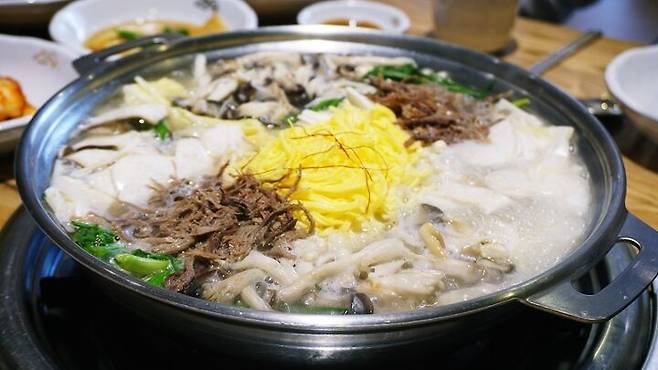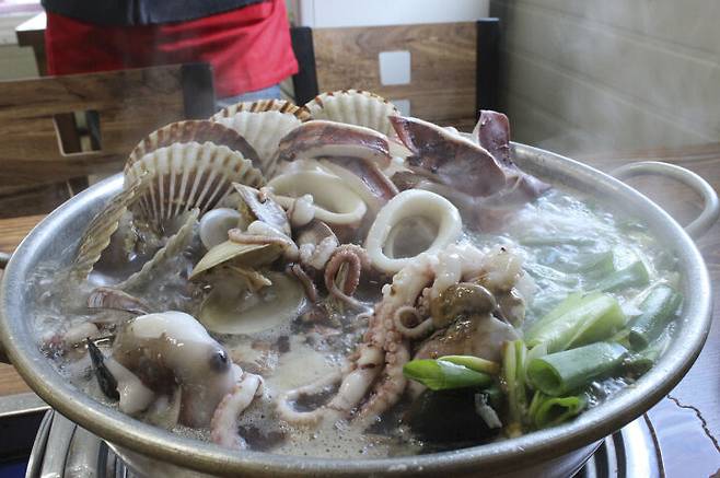 각종 해물이 들어간 시원한 칼국수가 대표 메뉴인 이곳에는 칼국수와 보쌈, 해물파전 등의 메뉴들이 있다. 커다란 냄비에 해물을 가득 넣어 끓여 먹는 칼국수에는 오징어와 문어, 가리비, 홍합 등의 여러 가지 해산물들이 푸짐하다. 해물이 육수에 우러나와 깊고 시원한 맛의 국물과 함께 먹는 칼국수는 더욱 맛있다. 밑반찬으로는 칼국수와 잘 어울리는 겉절이 김치가 제공된다. 냉김치말이국수와 고기만두, 수제돈까스 등의 메뉴도 있으며 해물은 추가 주문이 가능하다.