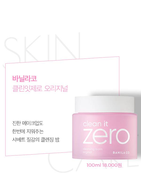 전 세계적으로 3.1초당 한 개씩 팔리는 바닐라코의 스테디셀러예요. 2015년 온 스타일 '겟잇뷰티'가 선정한 베스트 오브 베스트 클렌저에서 1위로 선정되면서 더욱 인기가 높아졌죠. 클렌징 밤 인기에 힘입어 워터 또한 출시했답니다. 클린잇제로는 피부 메이크업을 지우는 것뿐만 아니라 뷰티 툴 세척까지 가능해요.