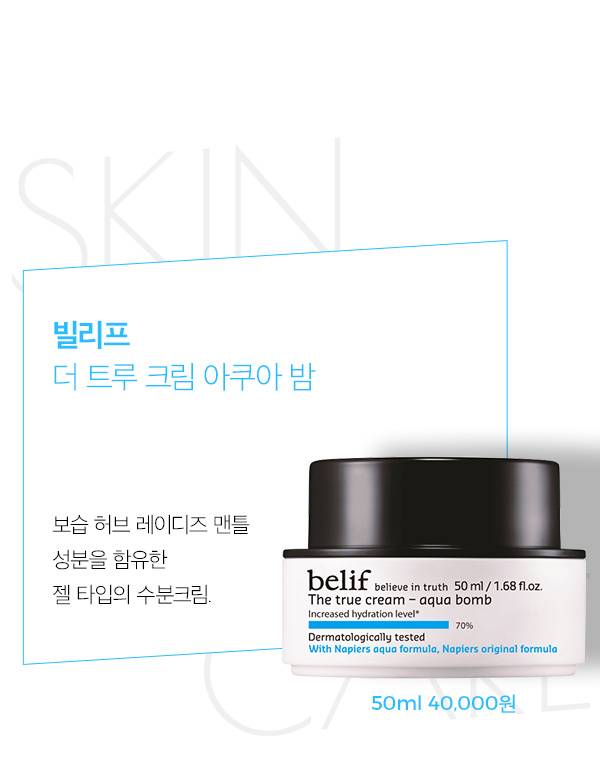 빌리프의 베스트 셀러인 ‘수분 폭탄 크림’의 별명을 갖고 있는 더 트루 크림 아쿠아 밤은 미국 세포라 매장에서 가장 인기가 많은 제품으로 기록되고 있어요. 뜨거운 인기에 힘입어 아쿠아 밤의 DNA를 이어받은 미스트와 슬리핑 마스크도 각각 출시됐답니다.