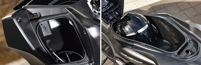 프런트의 이너 박스는 기존보다 0.2ℓ 확장되어 1.7ℓ이며 내부에 C타입 소켓을 마련해 편의성을 높였다. 새로운 차체 설계 덕분에 시트 밑 트렁크의 용량도 상승했다. 기존보다 2ℓ커진 30ℓ의 트렁크에는 일반 오픈페이스 헬멧은 물론이고 제품에 따라 풀페이스 헬멧까지 수납할 수 있다. 그 외의 공간의 여유가 생겨 글러브나 각종 소지품을 보관할 수 있다.