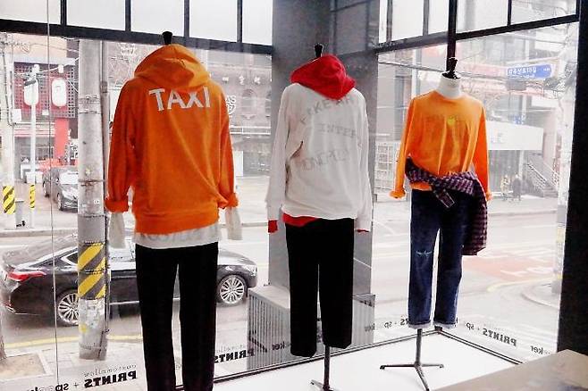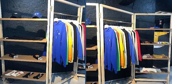 다가오는 봄을 맞이해 비비드한 색상의 맨투맨과 후드 티셔츠가 진열되어 있었는데