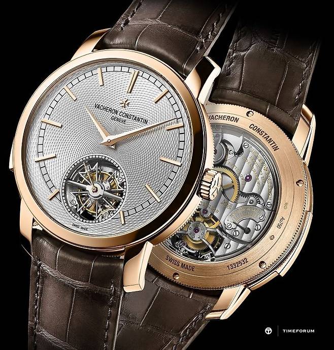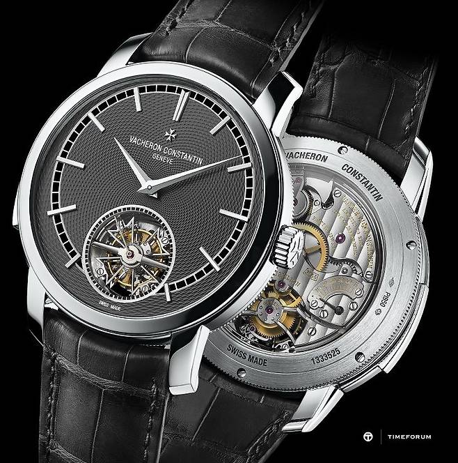 스위스 파인 워치메이킹을 대변하는 두 양대 컴플리케이션인 미닛 리피터와 투르비용을 한 시계에 응축한 시계로, 그간 퍼페추얼 캘린더 기능까지 더한 그랑 컴플리케이션 사양의 모델은 있었지만 미닛 리피터와 투르비용만 특정해 선별한 손목시계는 바쉐론 콘스탄틴 컬렉션에 올해 처음으로 등장하는 것입니다. 타임온리 형태에 단일 컴플리케이션(미닛 리피터 혹은 투르비용)만 앞세운 시계보다는 한 단계 윗급이면서 그랑 컴플리케이션급 보다는 다운그레이드된(금액적으로도 부담이 적은) 시계를 찾는 일부 니치 고객들을 유입하고자 하는 메종 나름의 치밀한 계산도 엿보입니다.