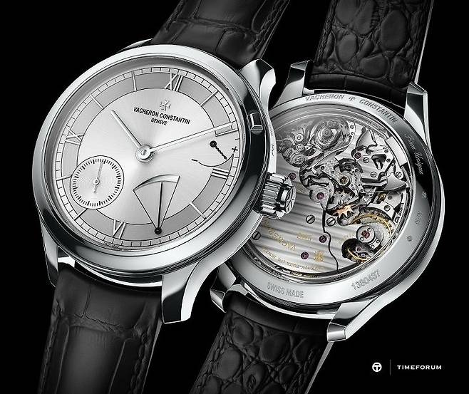 트래디셔널 미닛 리피터 투르비용은 2가지 컬러 다이얼의 플래티넘 모델과 1종류의 핑크 골드 모델로 출시됩니다. 공통적으로 직경 44mm, 두께 12.2mm 케이스에 새 매뉴팩처 수동 칼리버 2755 TMR을 탑재했습니다. 기존 그랑 컴플리케이션 칼리버인 2755에서 캘린더 모듈을 제거함으로써 두께도 6.1mm로 얇아졌습니다. 진동수 2.5헤르츠, 파워리저브는 약 58시간. 다른 바쉐론 콘스탄틴 무브먼트와 마찬가지로 제네바에서 생산된 최고급 시계임을 공인하는 제네바 홀마크 인증도 받았습니다.