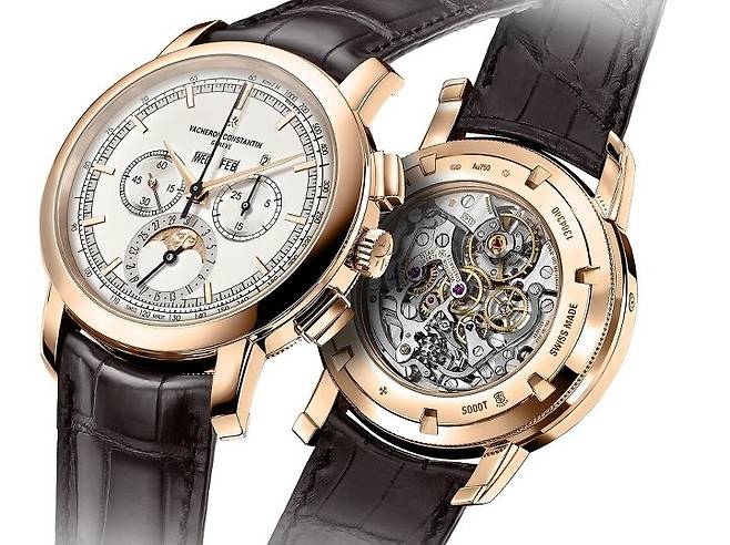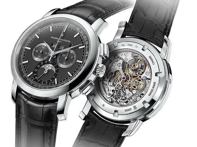바쉐론 콘스탄틴은 그간 꾸준히 르마니아 베이스(Lemania 2320)의 크로노그래프 퍼페추얼 캘린더 라인업을 전개해 왔지만, 이번에 공개된 신형 모델에는 몇 가지 변화가 눈에 띕니다. 우선 레퍼런스 넘버부터 기존의 47292 시리즈에서 5000T로 변경되었고, 다이얼에 크로노그래프 기능 표시와 관련한 타키미터 스케일이 추가되었으며, 무브먼트의 몇 가지 변화(스완넥 레귤레이터가 사라지고, 진동수 변화 등)와 제네바 홀마크 인증 획득이 그것입니다.