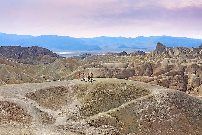 죽음의 계곡이라는 이름답게 데스밸리 국립공원은 사막 포스를 뿜어내죠. 6~9월 낮 기온은 40도!!! 그러나 밤 기온은 12도!! 일교차가 엄청 크답니다. 겨울에는 우기라서 비가 계속 내리고 2월에는 물이 불어나서 도로가 유실(..)되기도 한다네요.