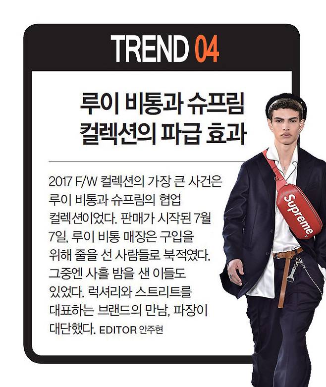 루이 비통과 슈프림 협업의 성공은 스트리트 문화가 메인스트림으로 자리 잡았음을 극단적으로 보여주는 사례다.