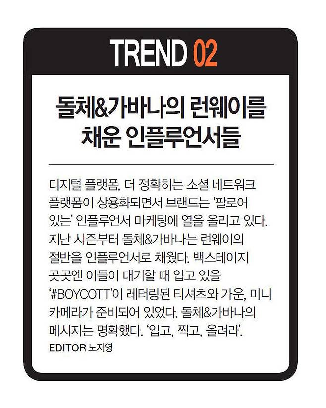 그렇다면 우리나라 패션 인플루언서의 수준과 패션을 대하는 태도는 어떤가? 그들에게 되묻고 싶다.
