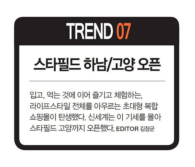 하드웨어 기반의 스타필드 같은 쇼핑몰은 현대인의 ‘A to Z’ 를 충족시켜주는 공간이다. 상품을 판매하는 것은 물론, 기존에 볼 수 없던 새로운 놀이 콘텐츠를 이식했다. 이 장소를 직접 방문할 때만 느낄 수 있는 희열을 극대화한 것이다.