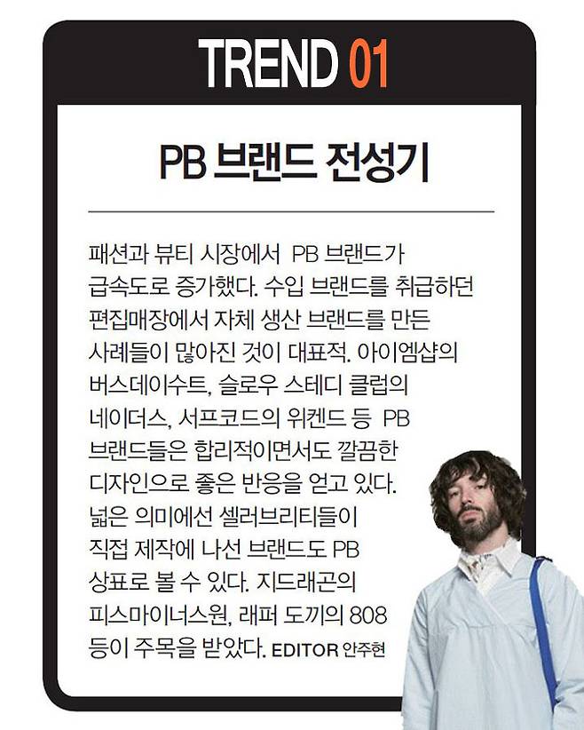 이에 대한 소비자의 반응 역시 나쁘지 않다. 성장했기 때문이다. 넘쳐나는 브랜드와 정보 사이에서 합리적인 안목을 키운 소비자는 네임 밸류에 크게 흔들리지 않는다. 더 많은, 더 괜찮은 PB 브랜드가 늘어날 거다.