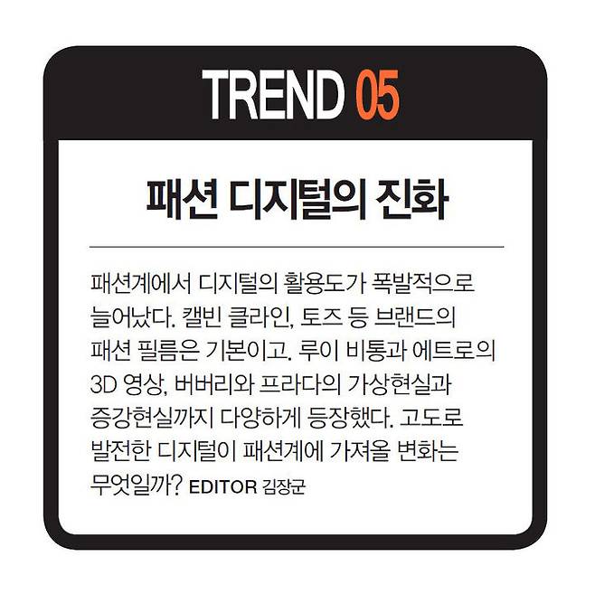 최근 주목받는 VR이나 3D 같은 신기술은 ‘체험’을 강조한다. 패션은 어느 분야보다 트렌드에 민감하기 때문에 이러한 신기술을 적극적으로 활용한다.