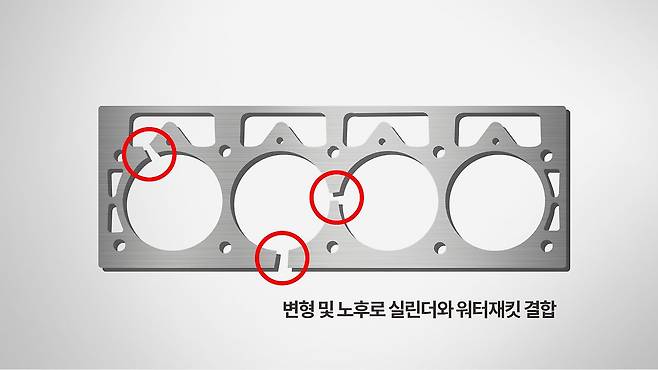 또한 만약 오염된 냉각수로 인해 엔진 헤드 개스킷의 워터 재킷 통로에 부식이 생기게 되면 냉각수 라인과 엔진 연소실이 직접적으로 연결되는 경우도 있는데요.