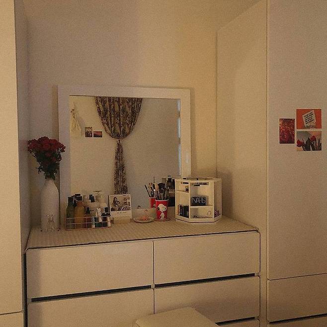 방에서 캔들 켜고 불을 꺼놓았을 때 아늑한 분위기를 너무 좋아해요. 여러 소품들을 선반에 놓아 꾸며놓은 공간이에요. 네일아트를 좋아해서 한 공간에 작은 네일샵처럼 연출해봤어용!