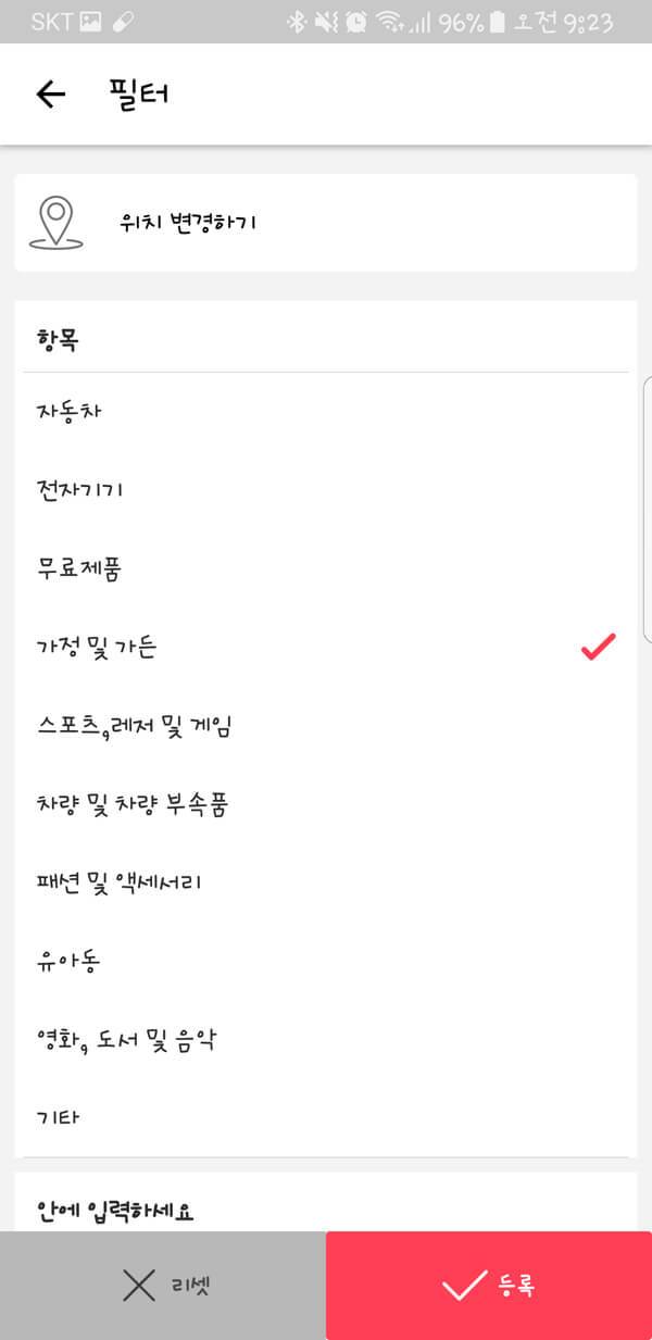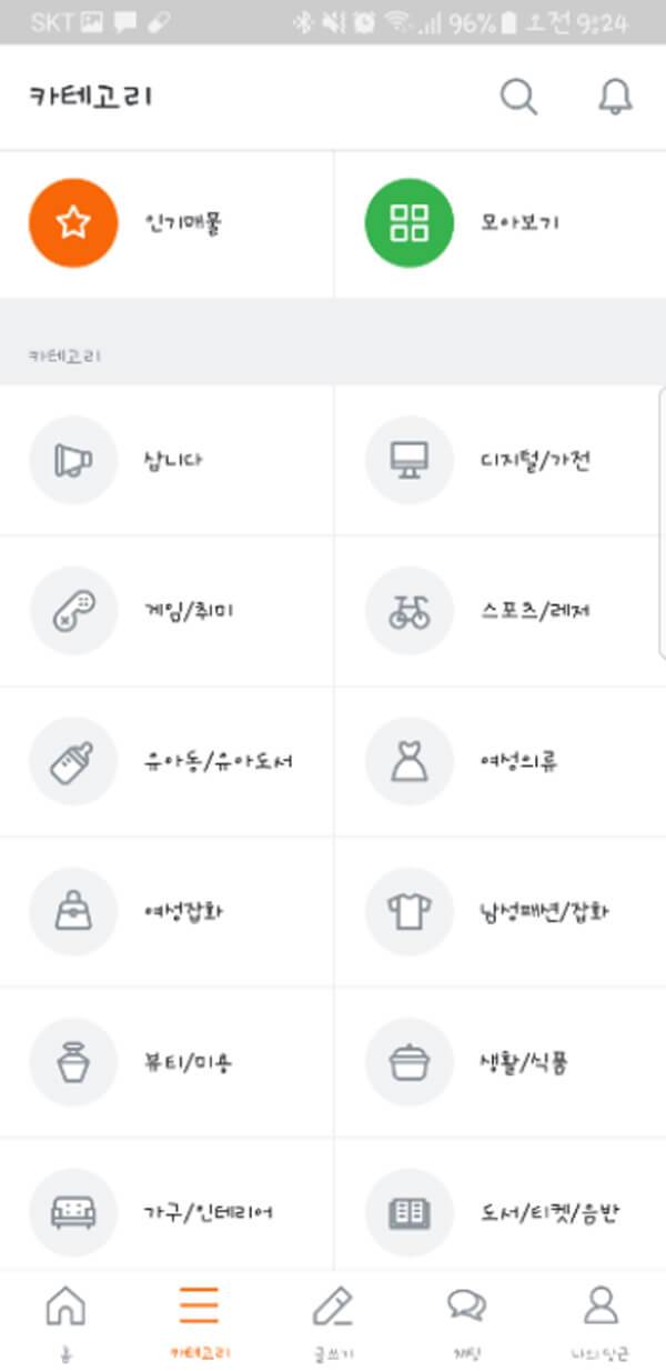 패션, 디지털 가전, 액세서리, 유아용품, 도서, 가구, 티켓, 용달 정보 외에 직접 기른 농산물 등 다양한 중고 물품 거래가 가능하다. 또한 사용자 근처에서 열리는 플리마켓 정보도 제공되며 벼룩 장터도 경험할 수 있는 서비스를 제공하고 있다.
