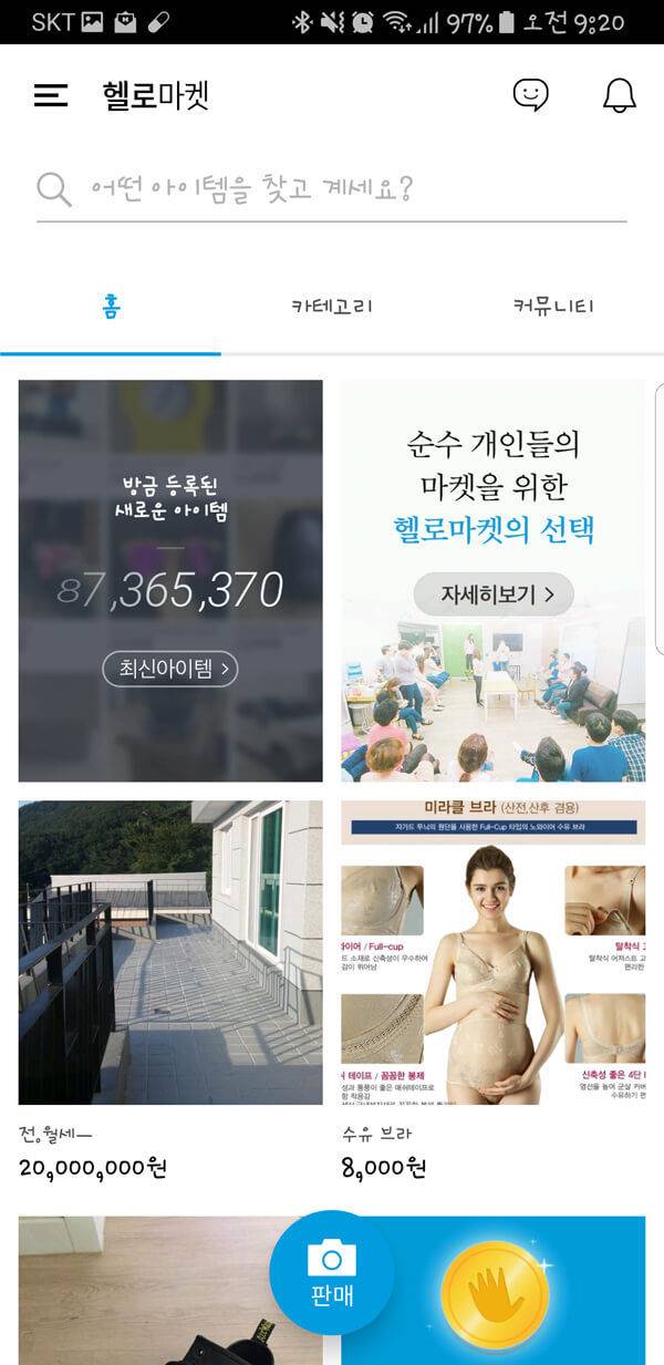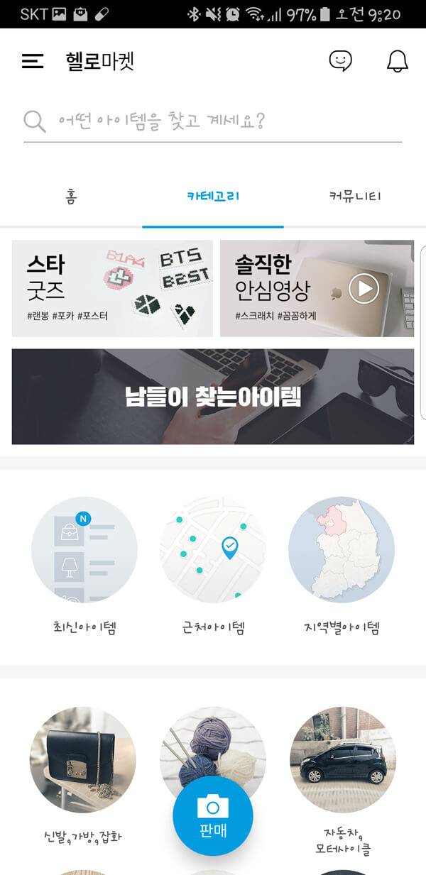 중고 물품 판매뿐만 아니라 사용자들 간의 교환과 무료 나눔이 활성화되어 있는 것이 장점인 헬로마켓이다. 평균 8100만 개의 광대한 아이템을 보유하고 있기 때문에 원하는 품목의 쉬운 검색이 가능하다. 또한 편의성을 증대하기 위해 판매자와 구매자 간의 쉽고 빠른 실시간 채팅인 헬로톡을 제공하고 있어 좋은 평가를 받고 있다.