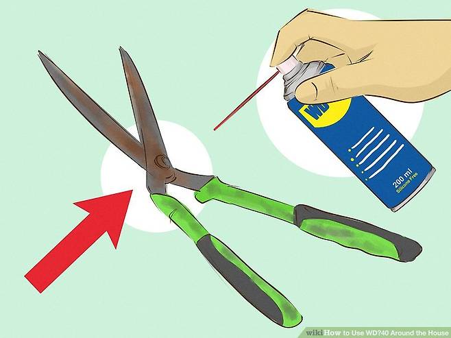 WD-40은 녹을 없애는데 탁월하다. 가위를 오랫동안 사용하지 않으면 녹이 슬어서 잘 움직이지 않는다. 이런 경우 WD-40을 두 가윗날 사이의 접합부에 뿌린다. 그런 다음 가위를 쥐고 조금씩 움직여주면 액체가 흡수돼 부드러워진다. 여전히 뻑뻑하다면 가윗날이 만나는 부분의 나사를 풀어 WD-40을 뿌려준다.