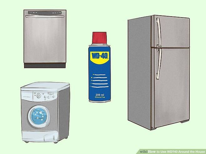WD-40은 냉장고, 가스레인지, 세탁기, 식기세척기 등 주방에 있는 스틸 제품의 먼지와 오물을 제거하는 데도 쓸 수 있다. 액체를 뿌린 다음 기름이 녹아내리면 행주로 닦아내면 된다.