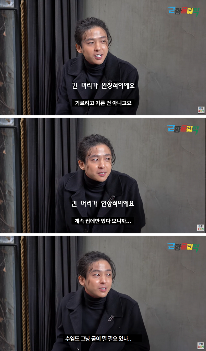 기르려고 기른 건 아니고요. 계속 집에만 있다 보니까 이렇게 됐어요. 그리고 수염은 누굴 만나지 않고 혼자 이렇게 지내다 보니까 그냥 굳이 밀 필요가 있나 싶어서 뒀어요. 귀찮잖아요. 어차피 나 혼자 보는 얼굴이니까요ㅎㅎ