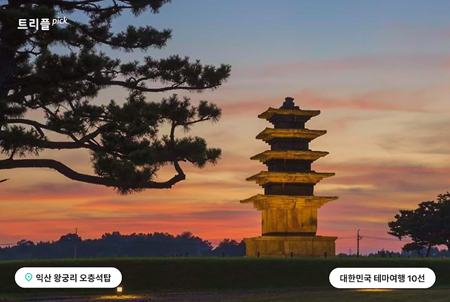 익산 왕궁리 유적은 백제 후기 무왕 시대에 조성된 궁궐터로, 2015년 유네스코 세계문화유산에 등재되었다. 노을진 하늘, 달빛 아래의 소나무와 석탑의 아름다운 모습이 감탄을 자아낸다.