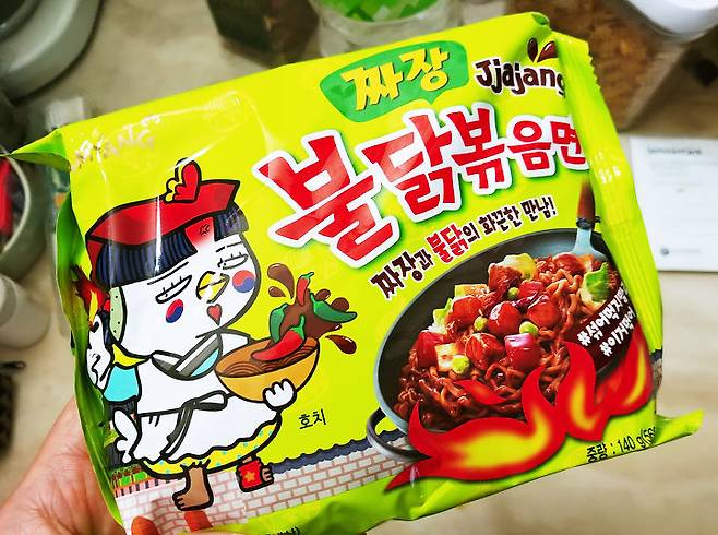 그도 그럴 것이 이 짜장 불닭볶음면은 고추류의 매운 정도를 나타내주는 스코빌지수가 일반 불닭볶음면(4404)의 절반수준(2000)이라고 해요.