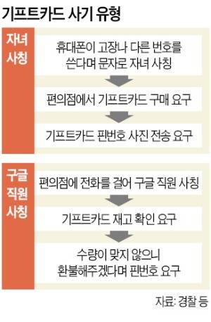 사기 수법도 진화하고 있다. “구글 직원을 사칭해 편의점에 전화를 거는 방식도 기승을 부리고 있다”는 게 경찰의 설명이다. 범인들은 편의점 직원에게 “구글 기프트카드 재고를 확인하기 위해 전화를 걸었다”며 수량 확인을 우선 요구한다. 재고를 알려주면 “수량이 맞지 않으니 환불 처리해주겠다”며 핀 번호를 불러 달라고 한다. 범인들이 핀 번호를 온라인을 통해 등록하면 가게에 있는 기프트카드는 쓸 수 없는 ‘깡통’으로 남게 된다.
