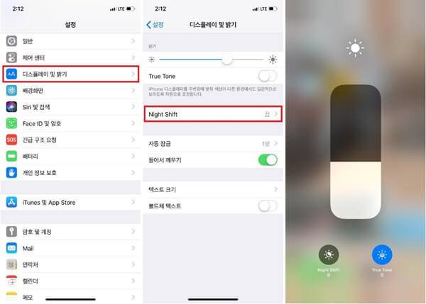 그렇다면 아이폰에서는 어떻게 블루라이트를 차단할까? 아이폰(iOS 12.2)도 안드로이드 스마트폰과 마찬가지로 [설정] 앱에서 [디스플레이 및 밝기]를 찾은 다음 [Night Shift]를 켜주면 된다. 조금 더 편하게 블루라이트 차단 필터를 켜고 싶다면 제어센터를 이용해보자. 제어센터에서 화면 밝기 조절 버튼을 꾹 누르면 위와 같은 화면이 나타나는데, 이곳에서 좌측 하단에 있는 [Night Shift]를 탭하면 손쉽게 블루라이트 필터를 켤 수 있다.