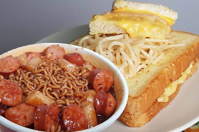 우선 가장 간단한 레시피 먼저 시작해볼까요? 원래 원조는 진짜 떡볶이에요. 진짜장과 자이언트의 조합이었는데요. 저는 여기서 살짝 변형해 짜파게티를 이용했어요. 치즈 소시지와 체더치즈는 필수 템이니 준비해주시고요. 이제부터 만들어볼게요.