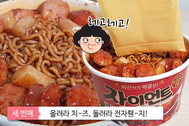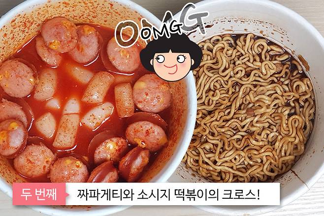 우선 가장 간단한 레시피 먼저 시작해볼까요? 원래 원조는 진짜 떡볶이에요. 진짜장과 자이언트의 조합이었는데요. 저는 여기서 살짝 변형해 짜파게티를 이용했어요. 치즈 소시지와 체더치즈는 필수 템이니 준비해주시고요. 이제부터 만들어볼게요.