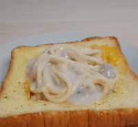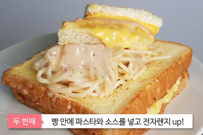 빵 안에 조리된 크림 파스타를 넣고 전자레인지에 30초 돌리면 멋들어진 빠네파스타 완성!