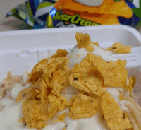 파스타를 기본 용기에서 조리한 후 스트링치즈를 얹어 전자레인지에서 30초가량 돌려주세요. 그리고 나초를 부서서 뿌려주면, 5,200원에 초간단 나초 파스타 완성!