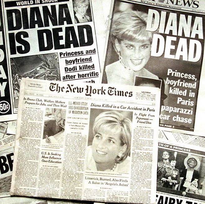 ↑사진= 다이애나비의 교통사고 사망 기사를 다룬 당시 신문들