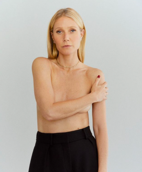 기네스 펠트로는 지난 7일(현지시간) 자신이 운영하는 패션브랜드 구프 SNS에 가슴 부위는 팔로 가린 채 상반신을 노출한 사진을 게재했다.