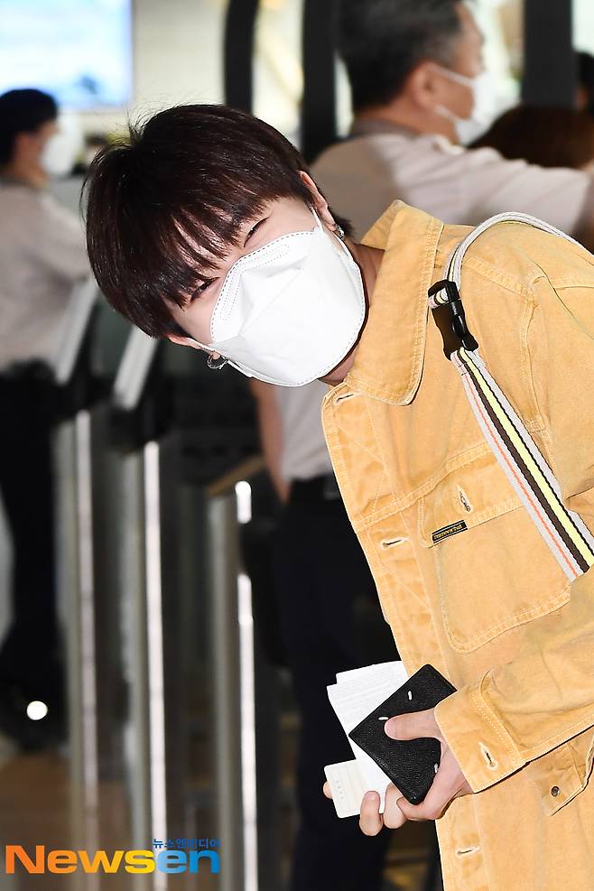 트레저(TREASURE) 멤버 방예담이 제주도로 출발하고 있다.