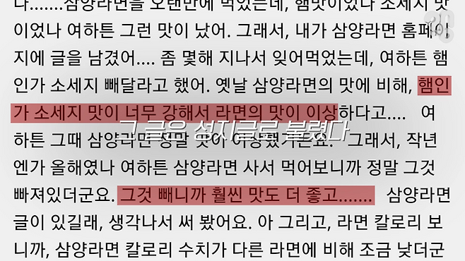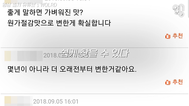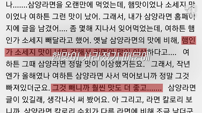 사람들 입맛이 변해서 저희가 연구소에서 연구를 하면서 매년 맛을 개선을 시키는데요. 디시갤 커뮤니티에 올라왔던 그때 저희가 햄후레이크가 아마 빠졌을 거에요.