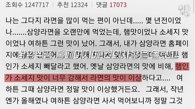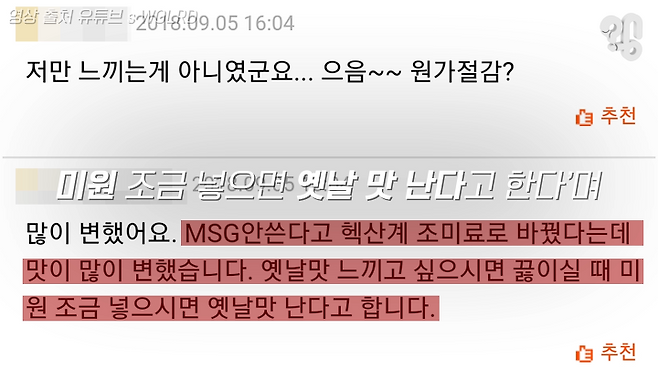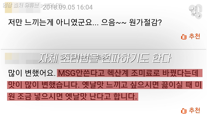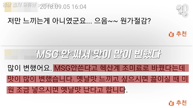 ‘MSG가 빠져서 맛이 변한 것’