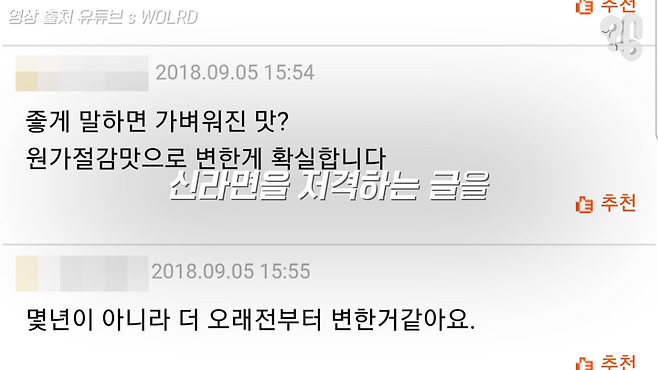 1986년도의 신라면 맛과 2019년도의 신라면 맛이 정확히는 다를 수밖에 없습니다.