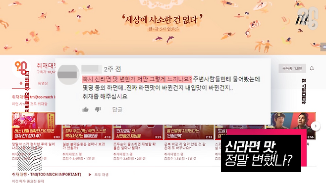 마침 ‘신라면이 옛날 맛이 아닌 것 같은데 라면 맛이 달라진 건지 내 미각이 달라진 건지 취재해 달라’는 의뢰가 들어와 농심에 전화해 봤다.