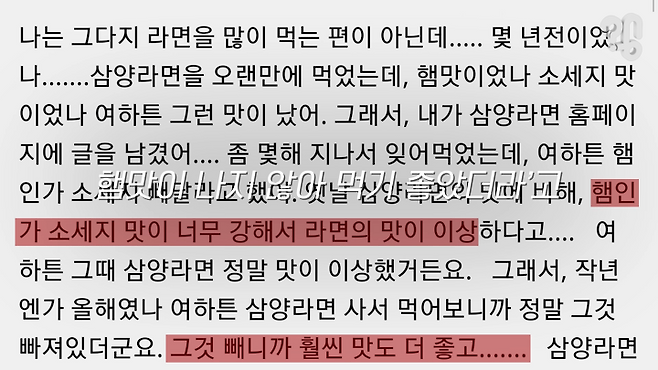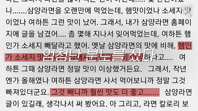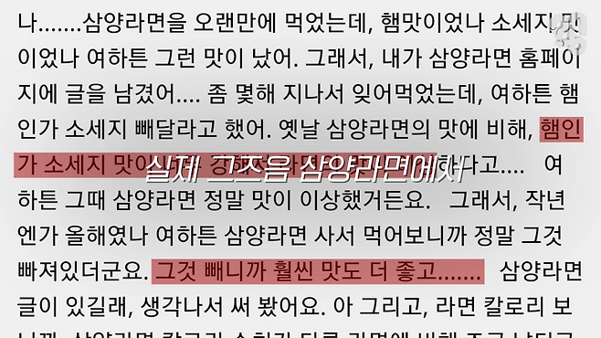 “(농심 홍보담당자) 0250 신라면 같은 경우는 1986년 처음 제품이 나왔거든요 근데 86년도에 생산된 고춧가루와 90년대에 생산된 고춧가루, 2019년에 생산되는 고춧가루하고 다 같은 고춧가루가 아닐 가능성이 높거든요. 고추 자체 품종도 개량이 되고 기온도 변하고, 그런 변화된 포인트가”