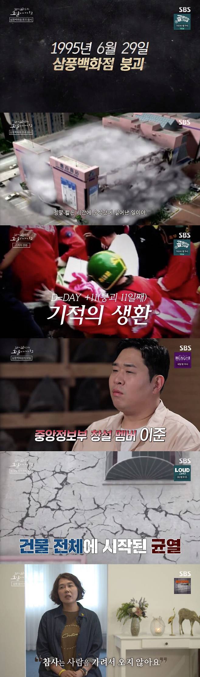 10일 방송된 SBS '꼬리에 꼬리를 무는 그날 이야기 시즌2'(이하 '꼬꼬무2')에서는 '핑크빛 욕망의 몰락 : 삼풍백화점 붕괴 참사'라는 부제로 1995년 6월 29일 끔찍했던 그날을 조명했다.