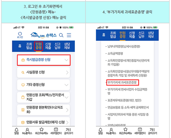 평소 시간을 내기 어려운 사업자 분들은 일부러 세무서에 방문하지 않고도 홈택스·손택스를 통해 빠르게 발급받으실 수 있겠죠?