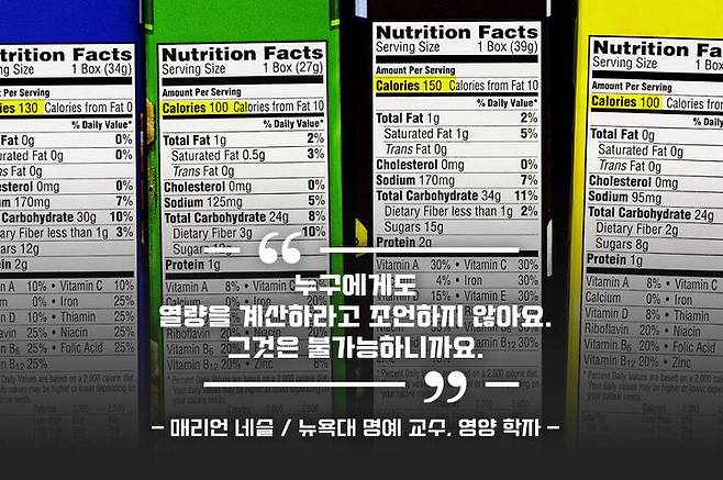 최근 들어 칼로리 계산이 정확하지 않다는 사실이 밝혀졌어요. 미국에서 진행된 영양 학자의 칼로리 맞히기 실험에서는 실제 칼로리와 추정 칼로리가 50% 가까이 차이가 났죠. 영양과 칼로리를 배우고 실전에서 뛰고 있는 전문가들도 정확한 칼로리 추정은 힘든다는 단적인 예인데요. 실제로 FDA(미국 식품의약처)에서는 영양 식품을 표시할 때 최대 20%의 오차 범위를 허용하고 있어요. 즉, 200kal라고 알고 먹었던 과자가 사실은 160kcal 일 수도, 240kcal 일 수도 있다는 겁니다.
