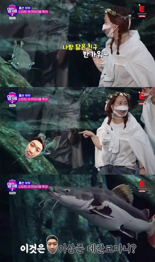 이에 아쿠아리움을 둘러보던 홍현희는 메기를 닮은 물고기가 나타나자 "나랑 닮은 친구"라고 반색했다.