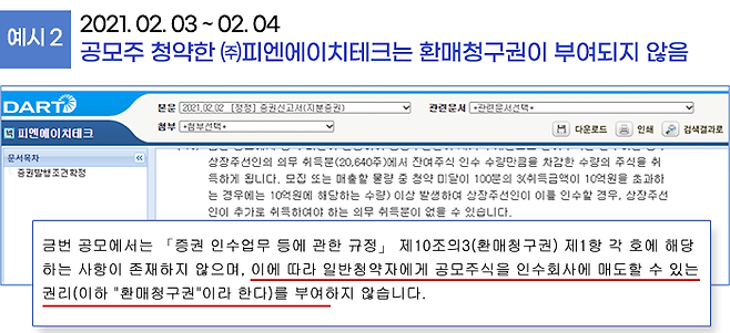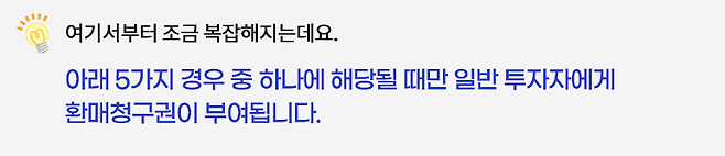 꼭 투자하려는 기업의 증권신고서를 통해 ‘환매’가 가능한지 여부를 알아보고 투자를 하는 건 투자자의 권리를 챙기는 행동입니다.