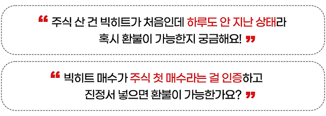 만약 상장된 주식을 샀다면 환불이 불가능합니다. 빅히트 주식도 이미 상장된 주식을 산 것이니 당연히 환불이 불가능하죠.