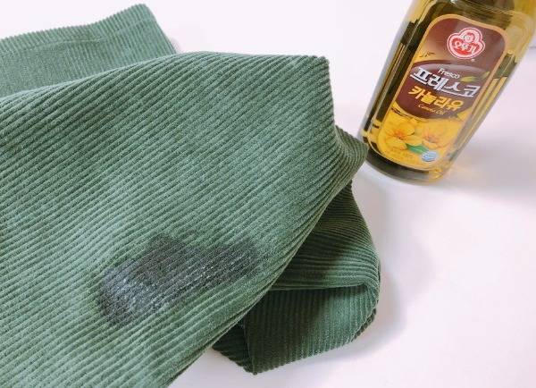 주의할 점이 있습니다. 식용유나 기름을 이용해 껌을 제거했다면 반드시 중성세제로 세탁을 해줘야 합니다. 저도 식용유로 대충 껌을 제거한 뒤 세재로 해당 부위를 빨았습니다.