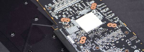 전원부는 멀티 페이즈 컨트롤러인 IR35217과 4+1 페이즈 컨트롤러인 MCP81022N, 최대 60A 전류 처리가 가능한 것으로 알려진 SiC649A DrMOS 기반의 11페이즈 구성으로, 다이렉트 터치 히트파이프 구조의 대형 써멀블록은 GPU를 포함해 DrMOS와 초크, VRAM의 발열을 하나로 처리할 수 있게 디자인되었다.