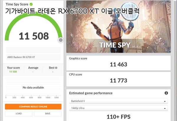 기가바이트 라데온 RX 6700 XT 이글의 성능을 확인했다. 레퍼런스 클럭 모델이므로 대체적인 성능은 앞서 AMD 레퍼런스 디자인 모델과 큰 차이가 없었지만, 오버클럭했을 때는 타겟층인 QHD 테스트인 3DMark Time Spy 기준 배틀필드 5의 추정 성능이 약 5프레임 이상으로 나타났다.