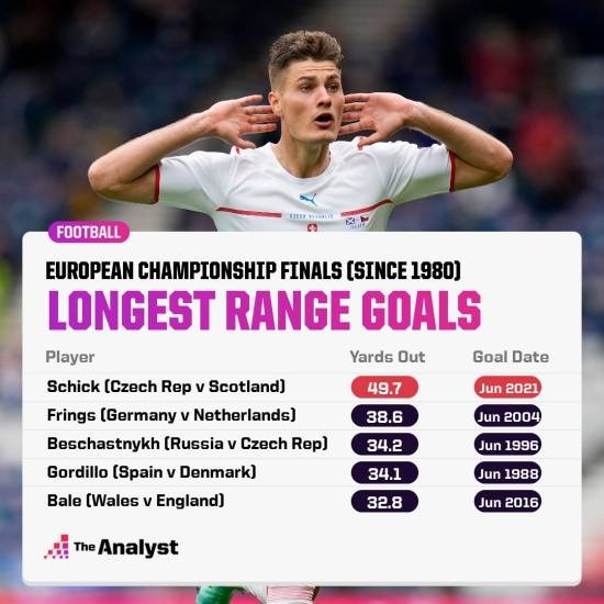 축구 전문 통계업체 옵타는 쉬크의 이 득점이 45m짜리 득점으로 기록을 집계하기 시작한 유로 1980 이후로 가장 먼 거리에서 터뜨린 득점이라고 전했다. 2위의 기록과도 상당한 차이가 있다. 2위 기록은 유로2004에서 나온 프링스(독일)의 득점이다.