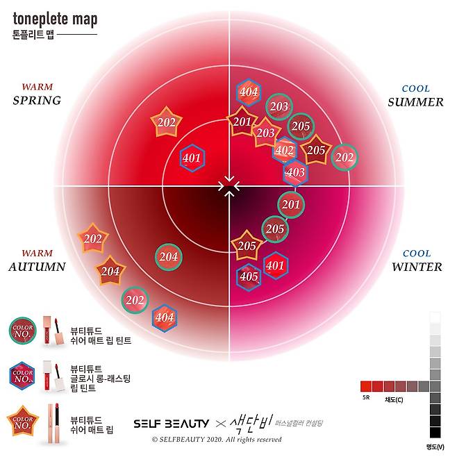 셀프뷰티에서는 직접 테스트 해보지 않고도 나에게 어울리는 컬러를 제안하기 위해 <톤플리트 맵>이라는 톤 지도를 제작했습니다. 자신의 톤을 알고 계시나요? 그럼 구매 전에 꼭 톤플리트 하세요!