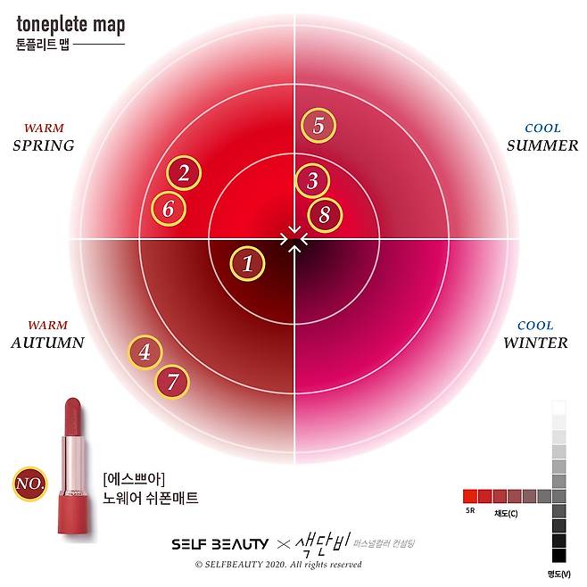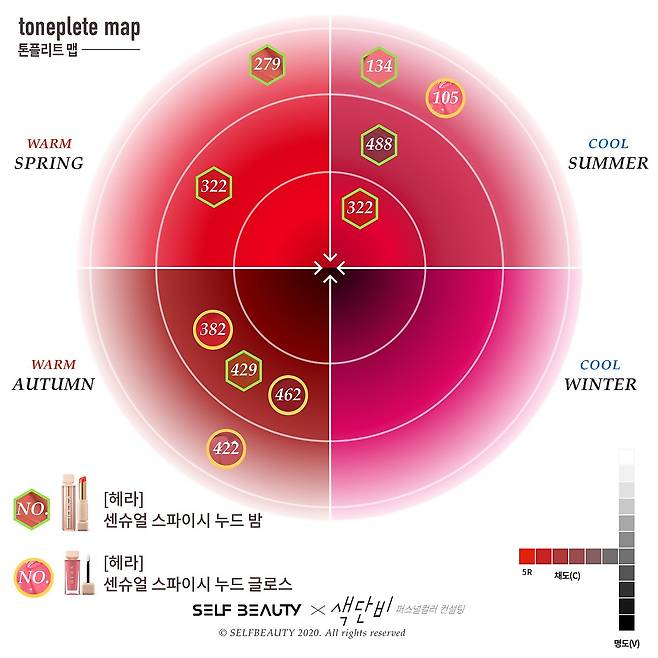 셀프뷰티에서는 직접 테스트 해보지 않고도 나에게 어울리는 컬러를 제안하기 위해 <톤플리트 맵>이라는 톤 지도를 제작했습니다. 자신의 톤을 알고 계시나요? 그럼 구매 전에 꼭 톤플리트 하세요!